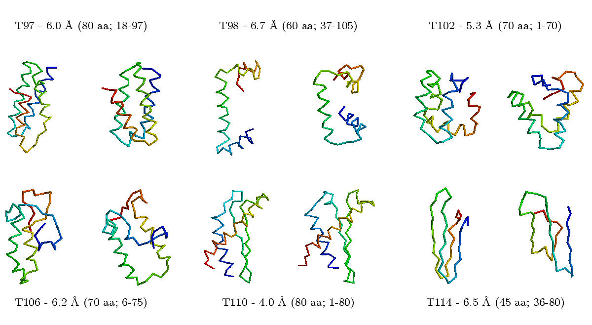One possible approach is to test all theoretically possible bond angles between atoms and to calculate the stability of the resulting structures. This approach requires too many calculations and cannot be completed within a reasonable period of time. Therefore, this approach is limited to short model peptides. Alternatively, one can predict the conformation of short peptide fragments of the protein or extract possible conformations from known 3D structures. In a second step, one can then combine these peptide fragments to a complete 3D structure ("fragment assembly"). Example (small, big).